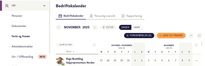 For å gjøre dette, åpne HR i menyen til høyre og gå til Ferie og fravær.