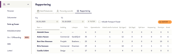 Hvordan hente rapport på sykefravær? For å se rapport på sykefravær, går du til Rapportering under Ferie og fravær. Du kan også åpne en ansatts profil for å se sykefraværet kun for den personen.