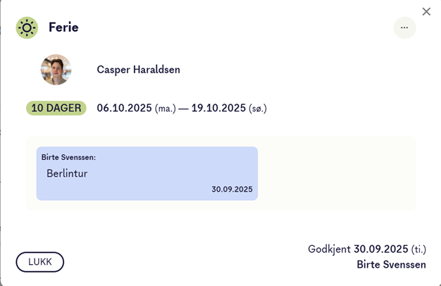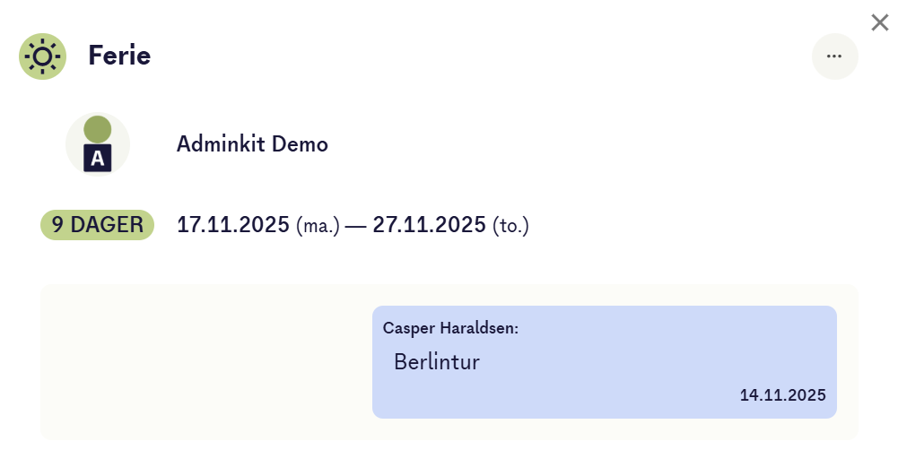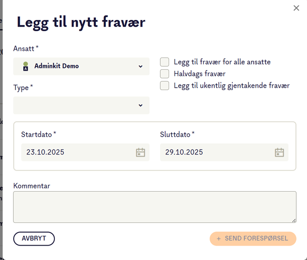 Dersom du skriver noe i dette feltet, kan andre klikke på fraværet og se kommentaren du har lagt inn.