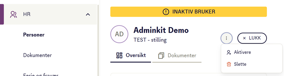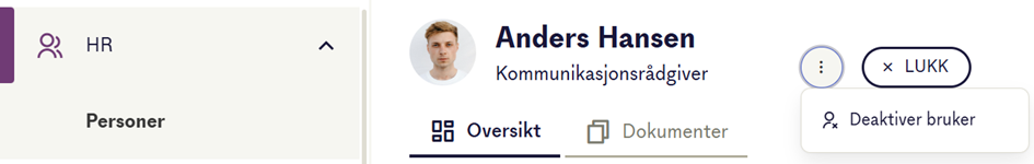 Gå til HR > Personer, og velg kontoen du ønsker å deaktivere.